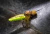 An extended body caddis pupa tied with latex ribbon - the al dente tagliatelle of fly tying materials.