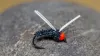 Materials Used: Hook Fulling Mill Ultimate Dry size 20 Thread, Uni-8/0 Red Tail, Black Cock Fibres Body, Red Thread