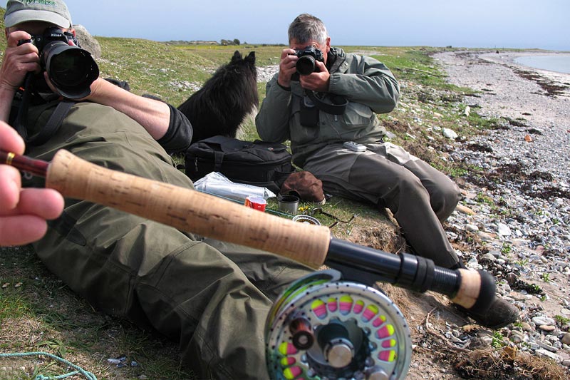 The guys admiring an Abel steelhead reel (it's me to the left . Photo Nils Jorgensen)