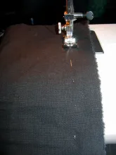 Apart from the rods you need some fabric. I used some heavy weight black Cordura type fabric that I already had. You want something that can take some wear and tear, but also something that gives a little. Not elastic as such, but with enough stretch to be able to slide on and off the tube after it has been sewn as you see in the pictures below.