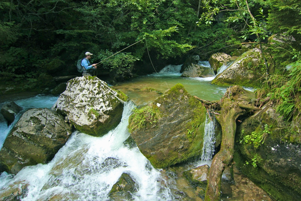 I find my peace and accept my roots as a fly-fisherman here - and not on a bonefish flat in Belize. This "here" is the alpine foothills of eastern Switzerland. It is true, millions of tourists visit those mountain valleys, the deep blue lakes and the picture book villages. But very rarely do they ask or even think about fishing. So I grew up with the image of living in a non-angling part of the globe. But that's not true. I even regard it as a privilege now to live here with the mountain wilderness literally beginning a good cast from my backdoor.
