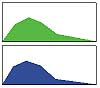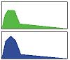 | The blueish picture has a normal RGB histogram (above), but low level of R tones (right). | ![]() | ![]() |