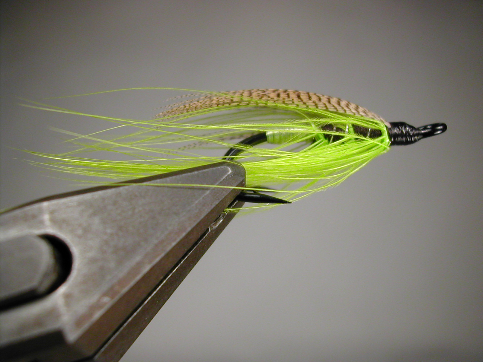 The usual way of depicting a fly is seen from the right side - the head pointing to the right and tail to the left. This is good for descriptive pictures for use in pattern documentation. It does not show the three-dimensional qualities of the fly, which will only be visible if the fly is taken from an odd angle. Using odd angles can also be good for showing details or particularities of certain flies.