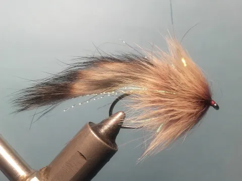| Hair hackle | Hairs to match the wing, spun in a dubbing loop with some pearl flash |