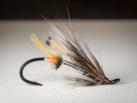 Wing Sparse Golden Pheasant Tippet over which is Gray Squirrel Tail