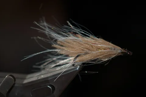 A simple, buggy looking streamer pattern made with eyelash yarn.