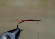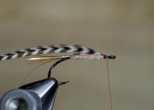 The original has a little flash in the tail and has a shiny silver rib, but for even more stealth you can leave out the flash and use a dull or almost invisible rib like mono or copper wire.