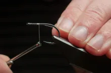 The eyes needed securing, and some LCR and a lamp was among the tools needed. I’d also need an old fashioned half hitch tool and a simple hackle guard as I will show you in the step-by-step below.