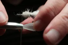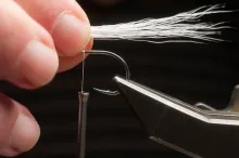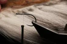 All I needed apart from that was some white thread, a bit of white dubbing and some eyes. The craft fur can be used for dubbing, but rabbit is much easier to handle, so a piece of rabbit with some white patches went into the bag too.
