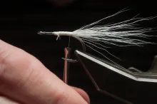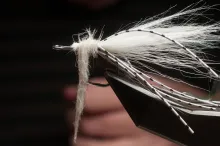 Before a recent fly tying get-together I was thinking about what to tie, and thought I’d find something simple, so that I could limit the arsenal of materials I had to bring. In stead of tying my usual suspects for sea trout like Magnus, Frede, Red Tags and such, I got the idea to break the mould a bit and do something different. I looked around in my way too large stash of materials (nah, just kiddin’! It’s not the least bit too large!), and my eyes fell on some white craft fur I’d bought last year.