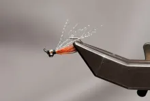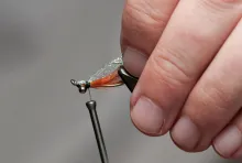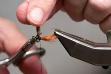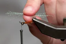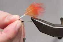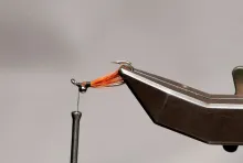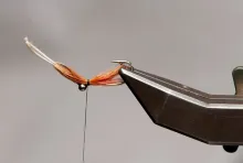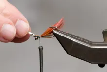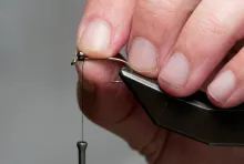 • Align the tips and tie in just behind the eyes so that the tipe just reach into the hook bend