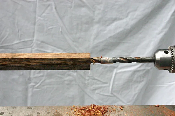 Drilling on the lathe secures a hole parallell to the actual rotation axis of the blank