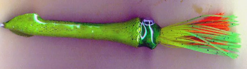 This is a squid for trolling at high speed for Tuna off the East coast, the form is made with EZ Body and made in one piece. The color was chosen by the person who was going to fish it.