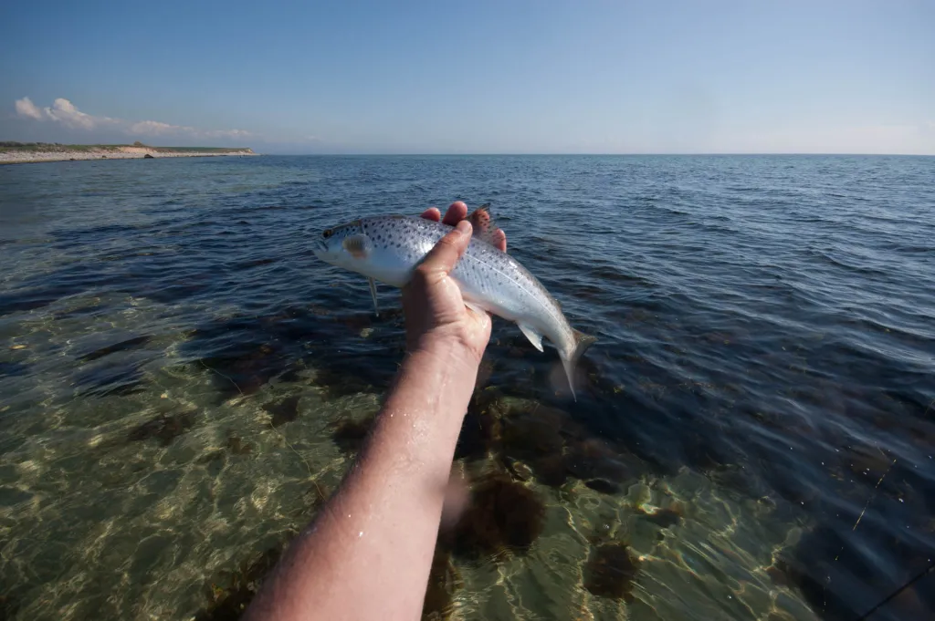 Sunny, clear water, riffles... Great conditions for a small, naturally colored sea trout fly.