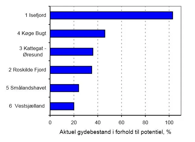 Seatrout spawning population in percent of the potential on Danish island Zealand