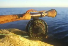 I landed it a little clumsily by grabbing it under the belly, and my friend Kim approached with a camera and shot a picture or two. As I was about to unhook the fish and release it, he handed me a neat hook release thingamajig, which I was to slide down the line over the hook and simply press out the fly. I liked the concept of having my soft office fingers well out of harms way. As the tool grabbed the fly, the pike wiggled violently and went one way, the fly another and the untethered tool described a nice arc, splashed into the water between the rocks and disappeared in the weed, never to bee seen again.