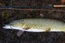 A decent pike took my fly, a blue flashy thingy of no special character.