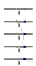 Now we tighten the loop until the loop is about to go under the wrapping (Fig. 4), followed by another cut of the wrapping thread very short (1mm / 0.04inch) in front of the loop, which now holds the thread tightly (Fig. 5).